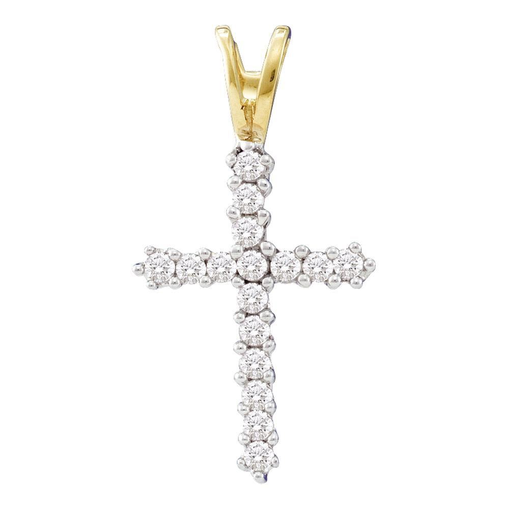 REF-9G1M - SKU: GD7934 ---- Diamond Roman Cross Religious Pendant 1/4 Cttw 10kt Yellow Gold