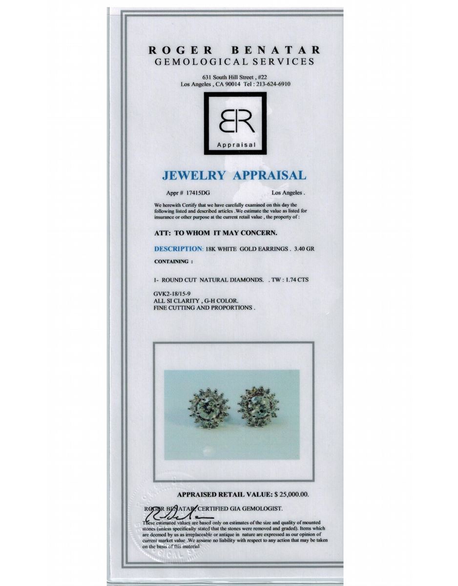 Diamond Round 1.74 ct Earring 18Kt White Gold 3.40 gr GVK2/18/15(9)