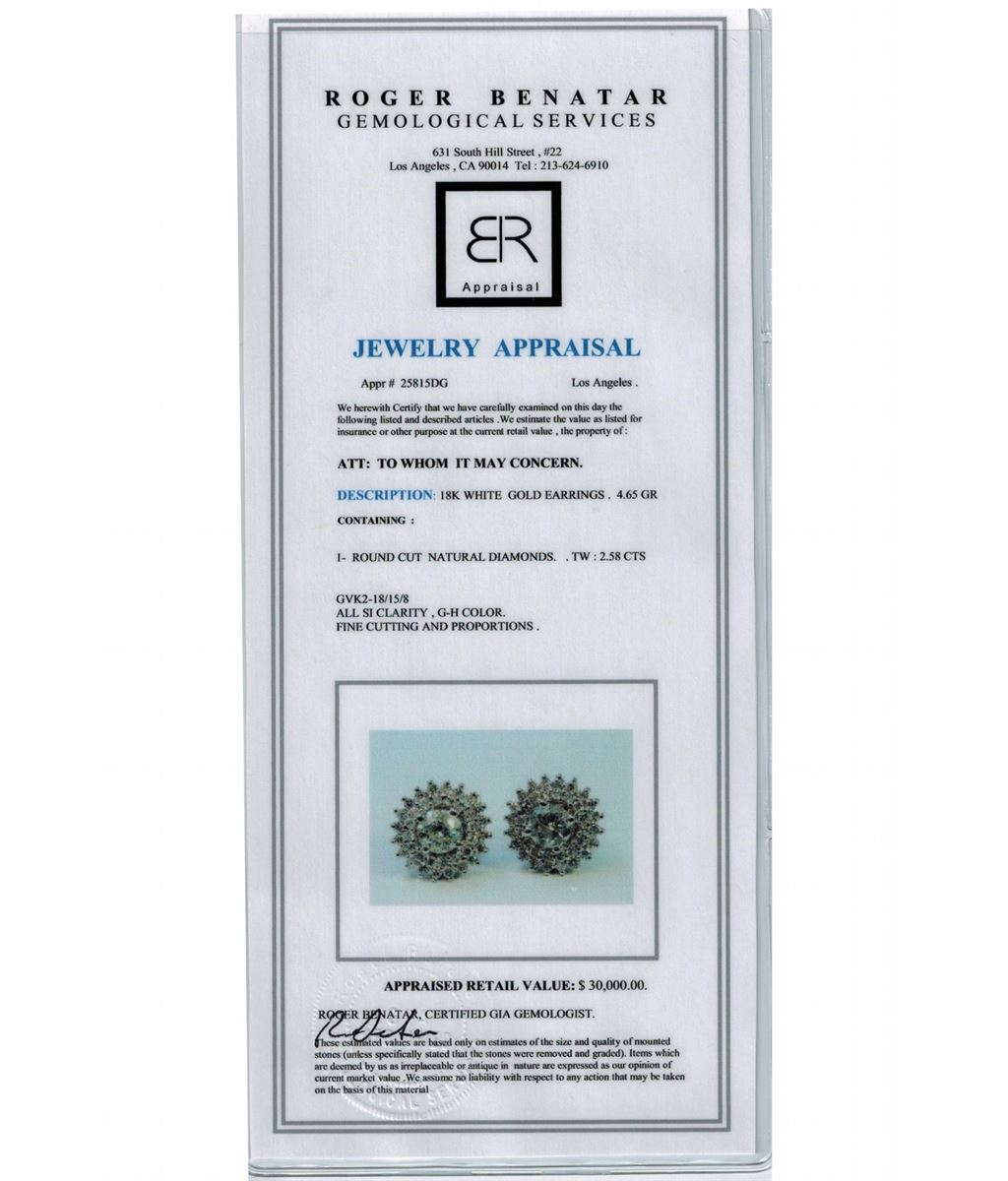 Diamond Round 2.58 ctw Earring 18Kt White Gold 4.65 gr