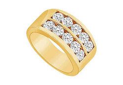 Ten brilliant-cut round diamonds are channel-set in two adjacent rows. Made in 14K yellow gold this ring has a total diamond weight (TDW) of 2.00 ct.