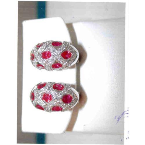 Lovely delicate RUBY & DIAMOND Earrings, 18 Kt. White Gold setting, 3.38 Ruby, .80 Diamonds Quality SE, Color G or Better. Matching ring available, too! Retail Appraisal included $4025. Best quality stones, high end jewelry. Appraisal included. Questions, ask Authentic appraisal can be supplied. Refunds can be granted w/in 14 days of receipt. Wholesaler's overstock & discontinued items.