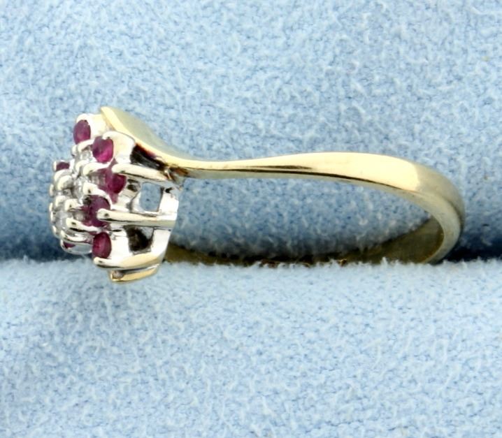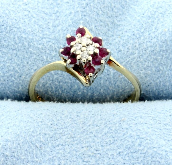 4-diamonds that weigh a total of 0.10 cts and 8 rubies that weigh .20 cts, size 7. 2.6g