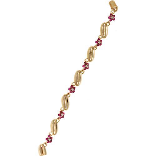 <B>Diamond, Ruby, Gold Bracelet</B></I><BR><BR>The bracelet features florettes, highlighted by full-cut diamonds weighing a total of approximately 0.30 carat, enhanced by round-cut rubies weighing a total of approximately 1.50 carats, alternating with scalloped 18k yellow gold links. Gross weight 20.70 grams. <I>(en suite with 39398 & 39399</B></I><BR><I>Length: 7-1/2 inches</B></I> <B>Condition Report:</B> Bracelet<BR><BR>Diamonds<BR><BR>Average Color: GHI<BR><BR>Average Clarity: VS<BR><BR>Shapes: Round<BR><BR>Diamond Count: 1-25<BR><BR>Colored Gemstones: Ruby<BR><BR>Average Clarity: Good<BR><BR>Shapes: Round<BR><BR>Gemstone Count: 26-50<BR><BR>Notes: Very good condition. Bracelet is very well made. A box clasp secures the bracelet.<BR><BR><BR><b>Shipping:</b> Miscellaneous Collectibles, Smal (<a target="_blank" href="http://www.heritageauctions.com/common/shipping.php">view shipping information</a>) <BR><BR><B>Important notice: