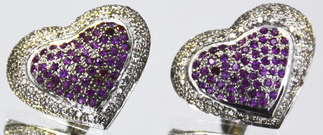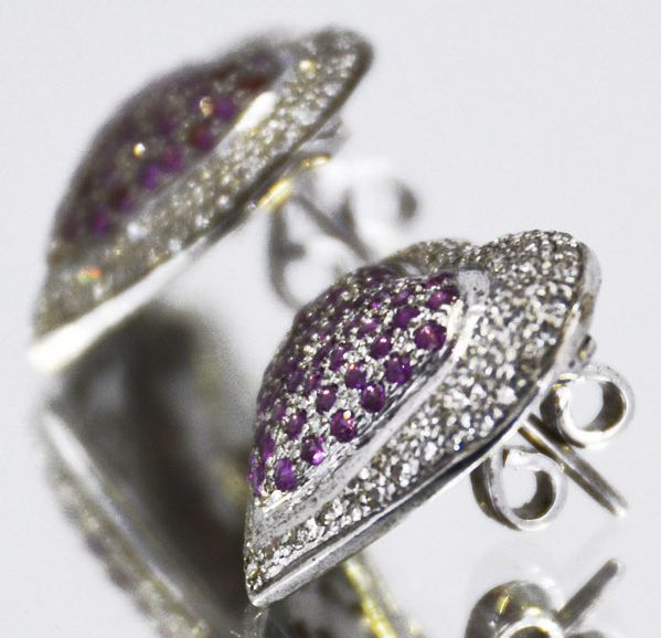 1.20cttw Round White Diamond, approx 1.00cttw Round Ruby, Beautiful Heart Shape great Evening Wear, post backs