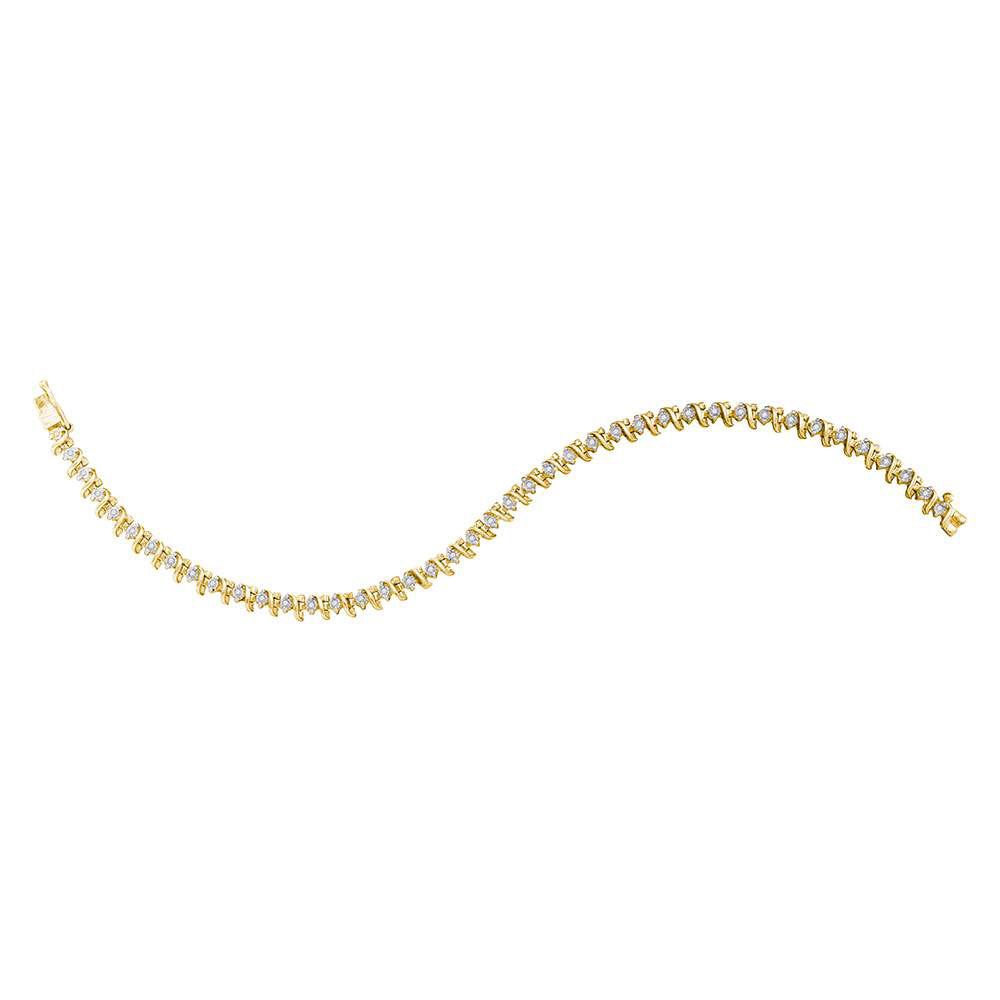 Yellow-tone Sterling Silver Womens Round Diamond S Link Tennis Bracelet 1/3 Cttw