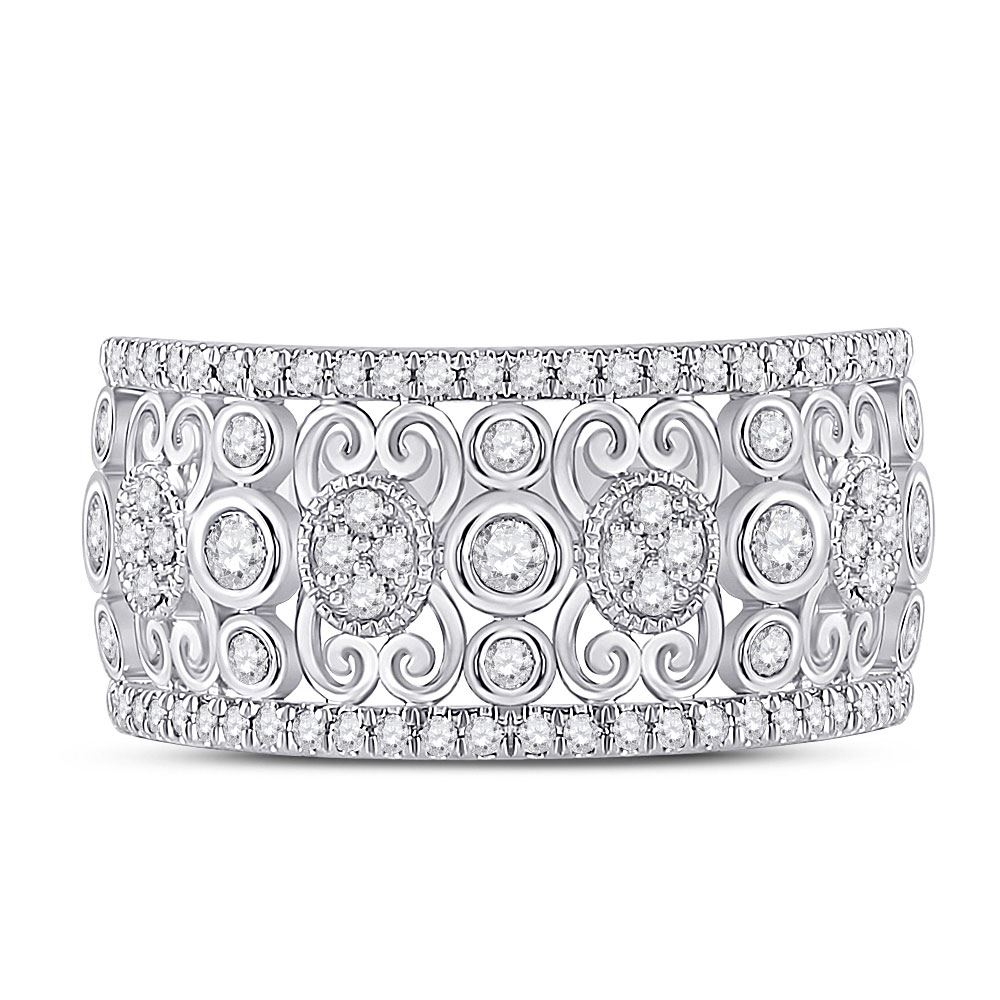14kt White Gold Womens Round Diamond Scroll Cluster Band Ring 5/8 Cttw