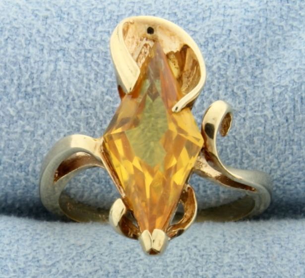 10K yellow gold, there is a 18x8mm star shaped citrine, great color, clarity, & cut! Size 5 1/2 3.5g