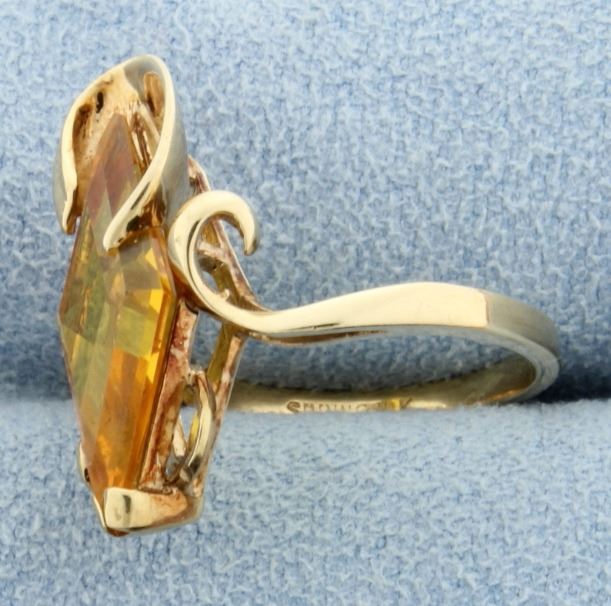 10K yellow gold, there is a 18x8mm star shaped citrine, great color, clarity, & cut! Size 5 1/2 3.5g