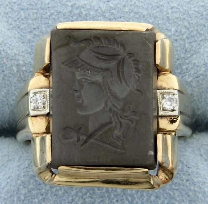 10K yellow gold, it contains two .05ct diamonds, SI clarity, G color. Size 12 9.6g