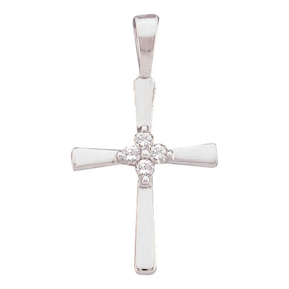 REF-5W5H - SKU: GD10832 ---- Diamond Simple Cross Religious Pendant 1/20 Cttw 10kt White Gold