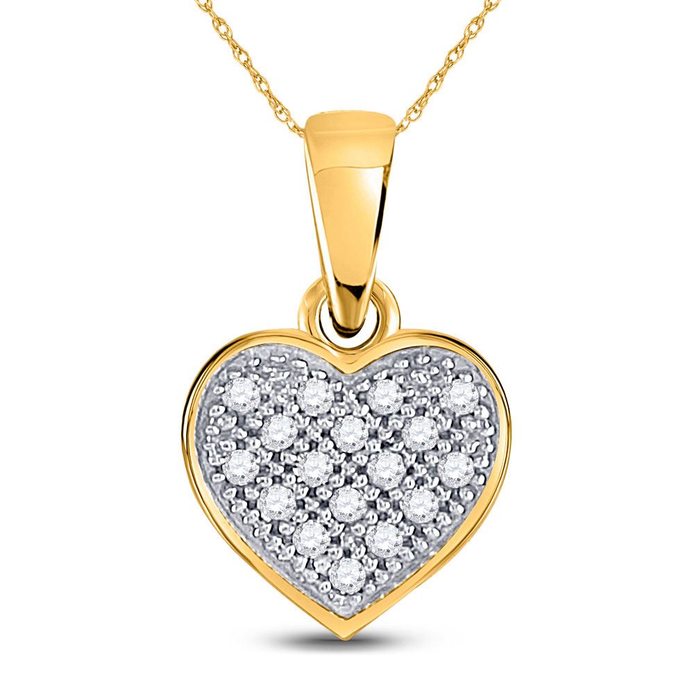 10kt Yellow Gold Womens Round Diamond Simple Heart Cluster Pendant 1/20 Cttw