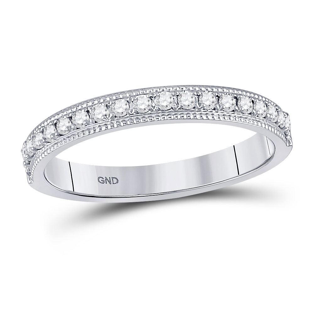 14kt White Gold Womens Round Diamond Single Row Band Ring 1/4 Cttw