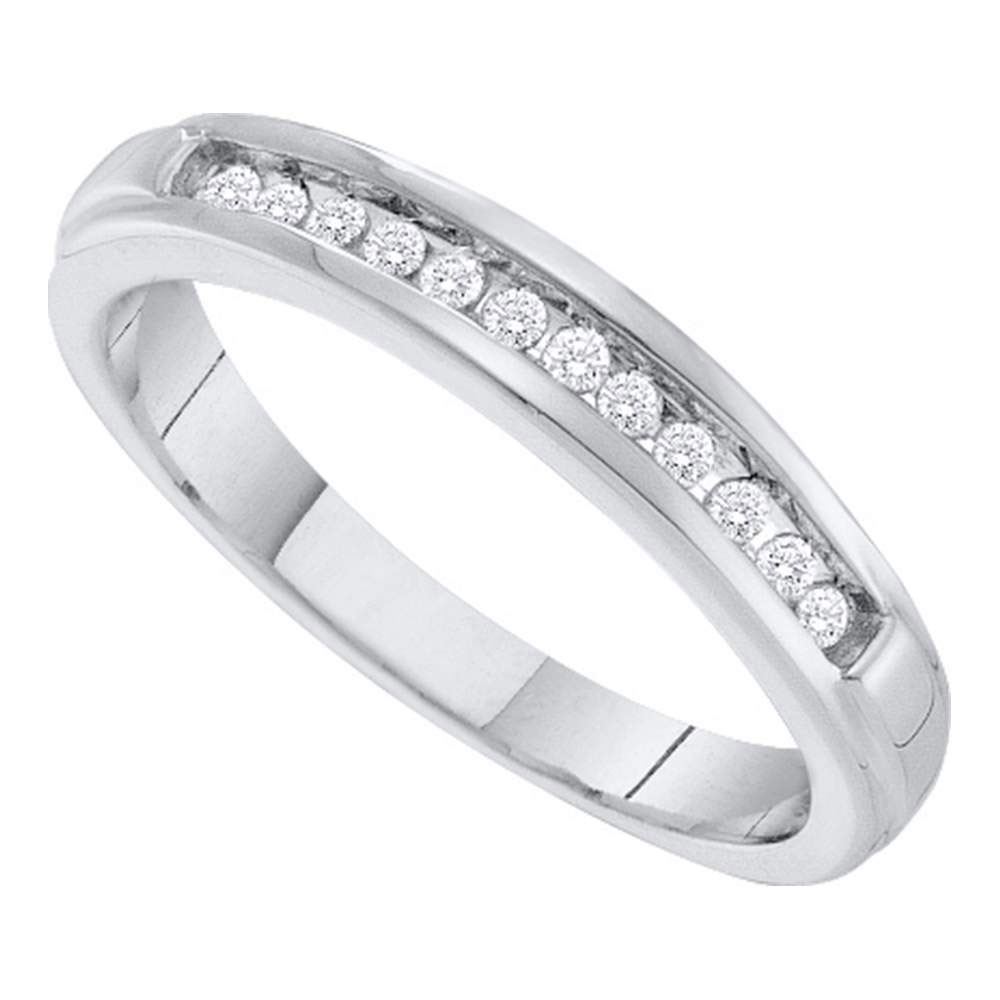 10kt White Gold Womens Round Diamond Single Row Band Ring 1/8 Cttw
