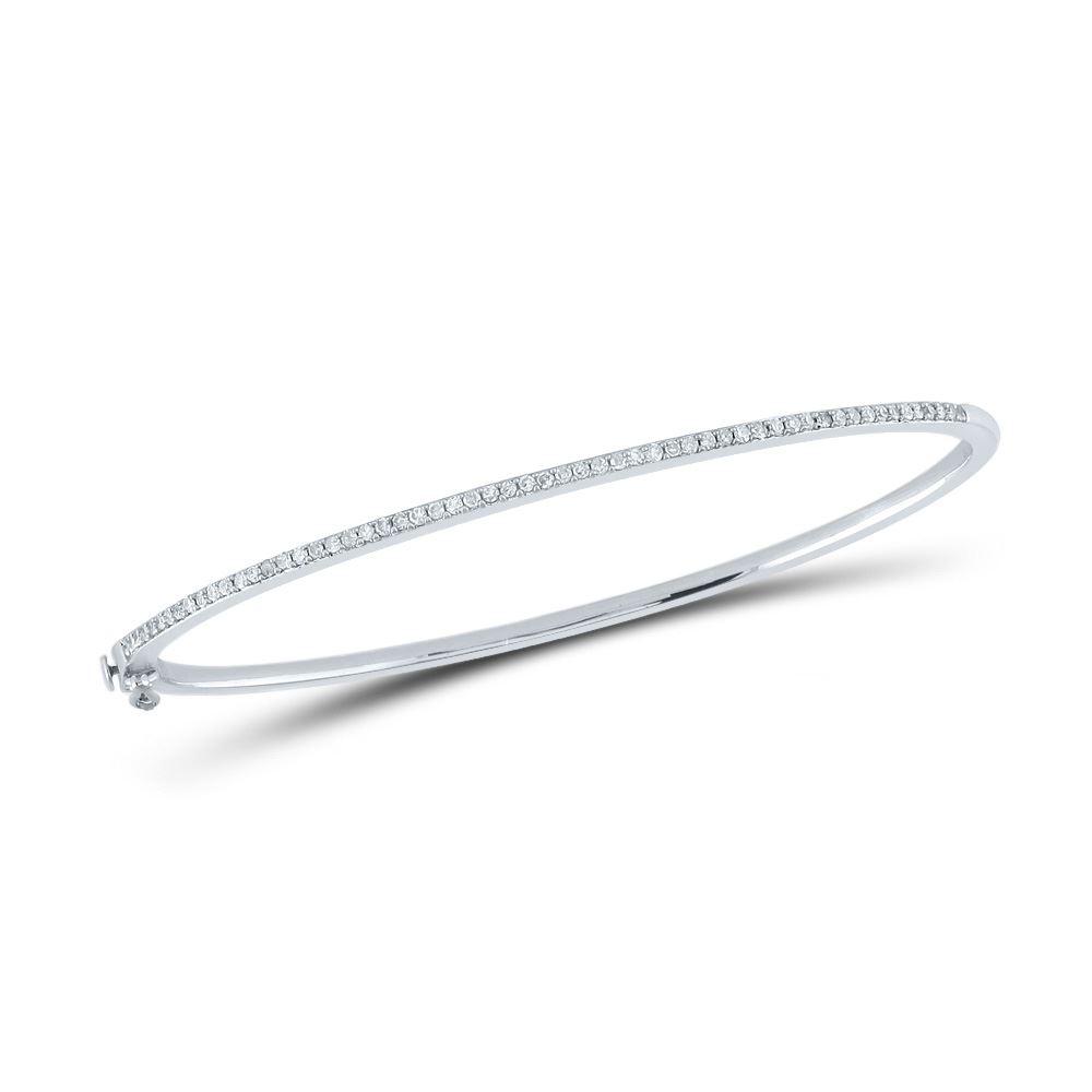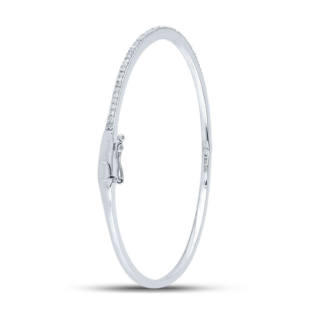 Sterling Silver Womens Round Diamond Single Row Bangle Bracelet 1/3 Cttw