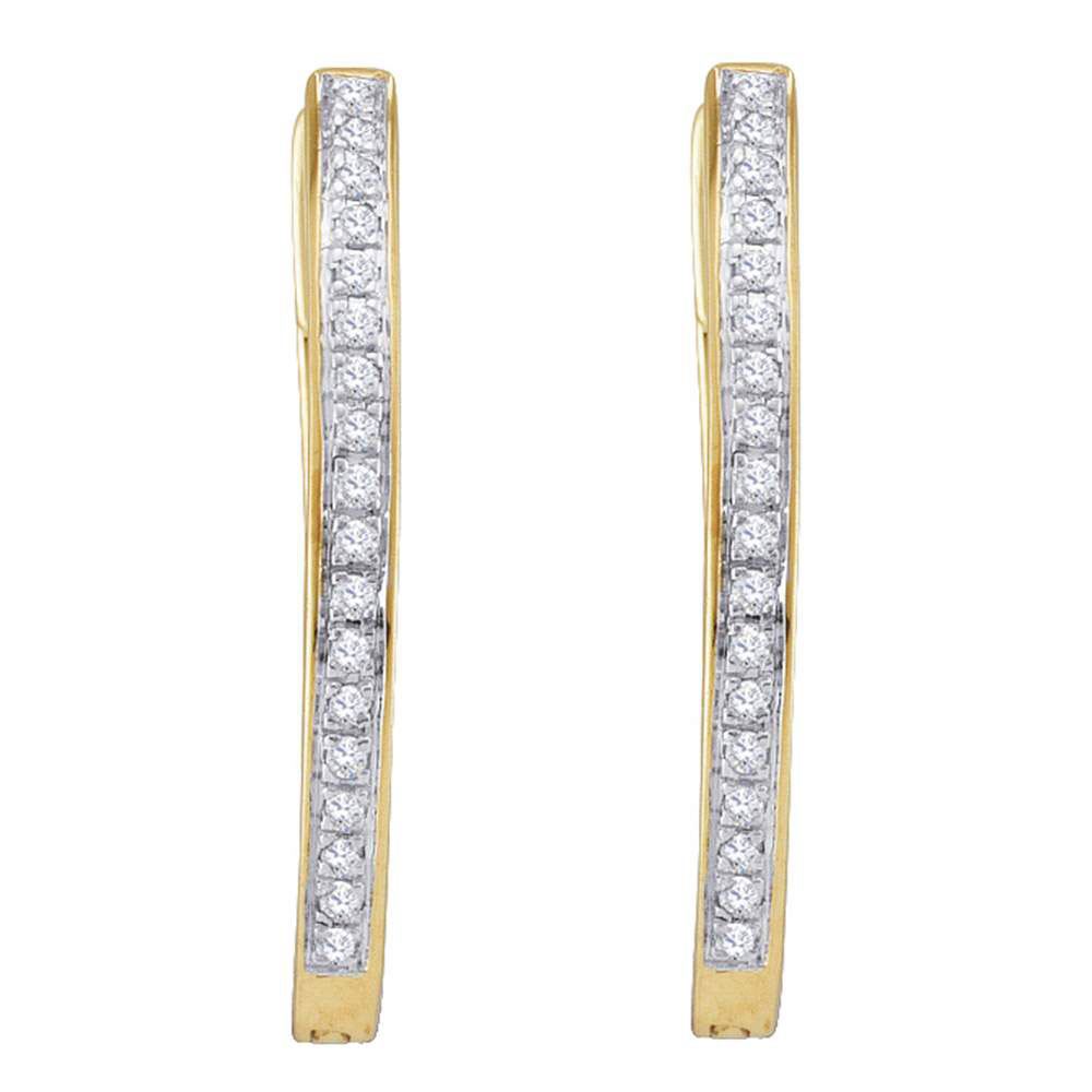 10kt Yellow Gold Womens Round Diamond Single Row Hoop Earrings 1/10 Cttw