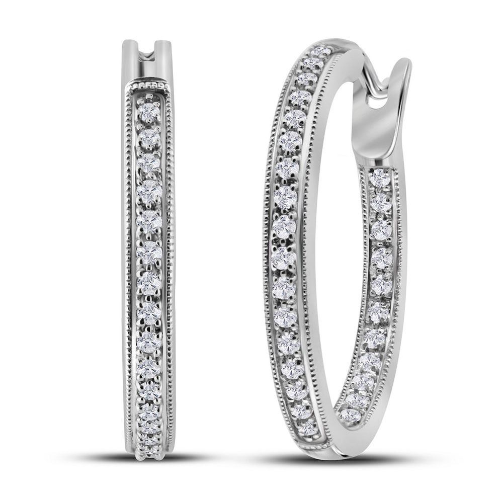 REF-60K9R - SKU: GD49802 ---- Diamond Single Row Inside Outside Hoop Earrings 1/2 Cttw 14kt White Gold