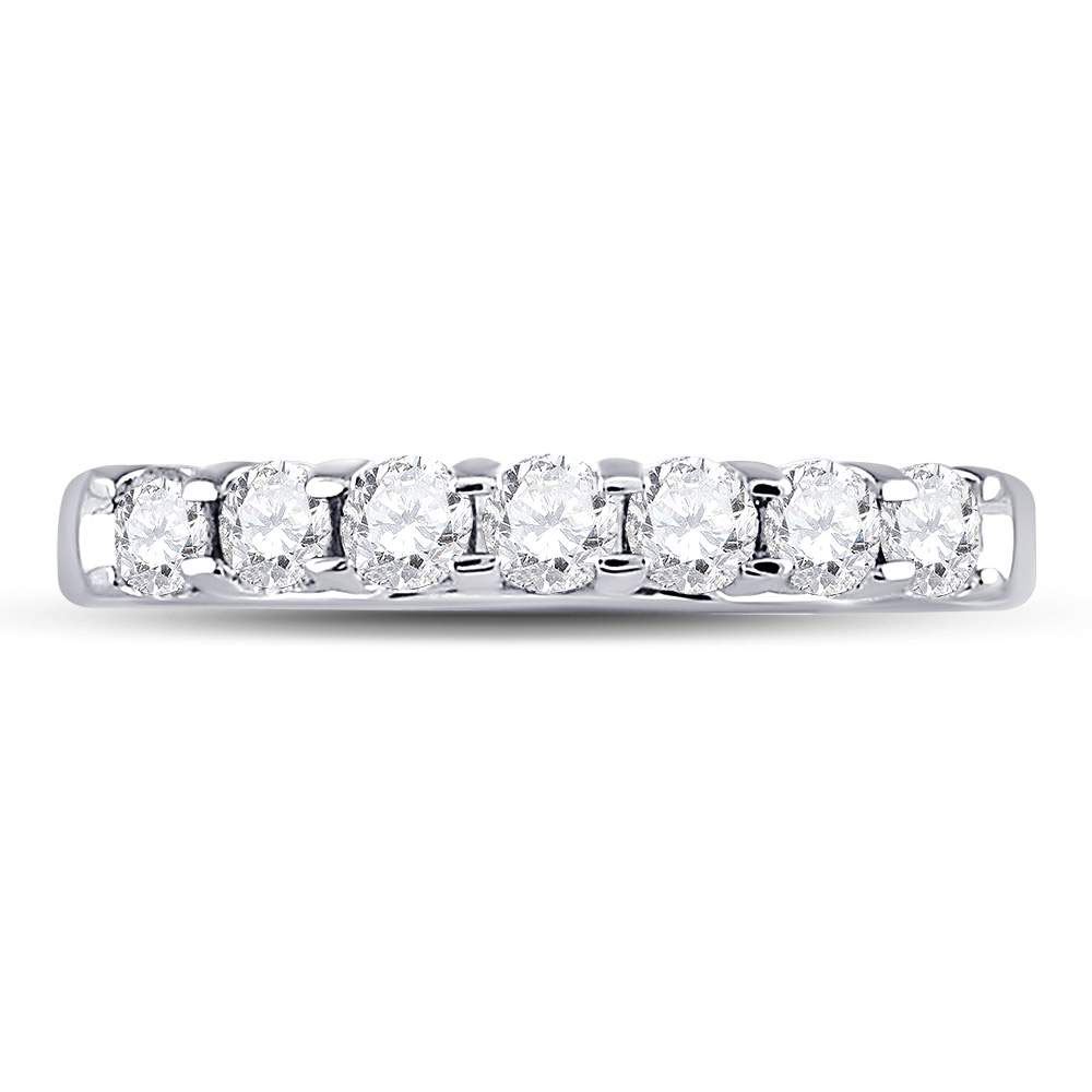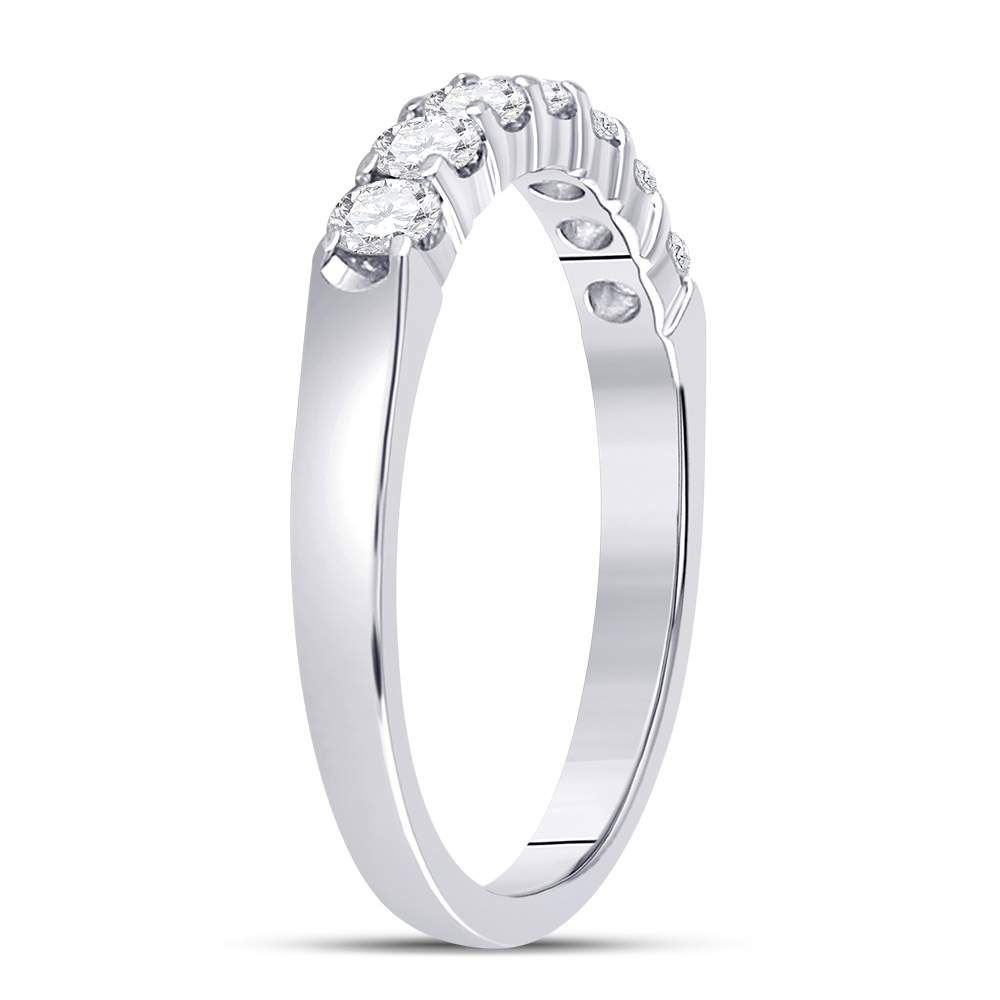 14kt White Gold Womens Round Diamond Single Row Machine-set Wedding Band 1/2 Cttw