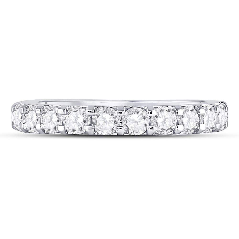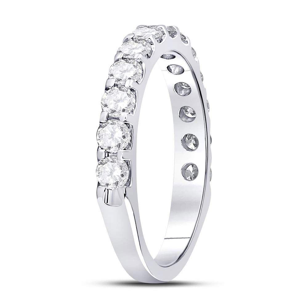14kt White Gold Womens Round Diamond Single Row Machine-set Wedding Band 1 Cttw