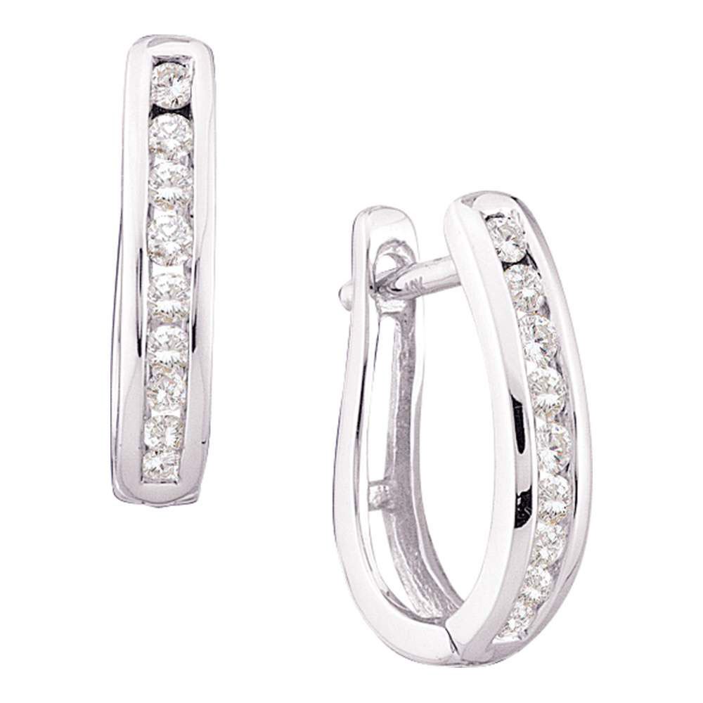 REF-27F3N - SKU: GD48993 ---- Diamond Single Row Oblong Hoop Earrings 1/4 Cttw 14kt White Gold