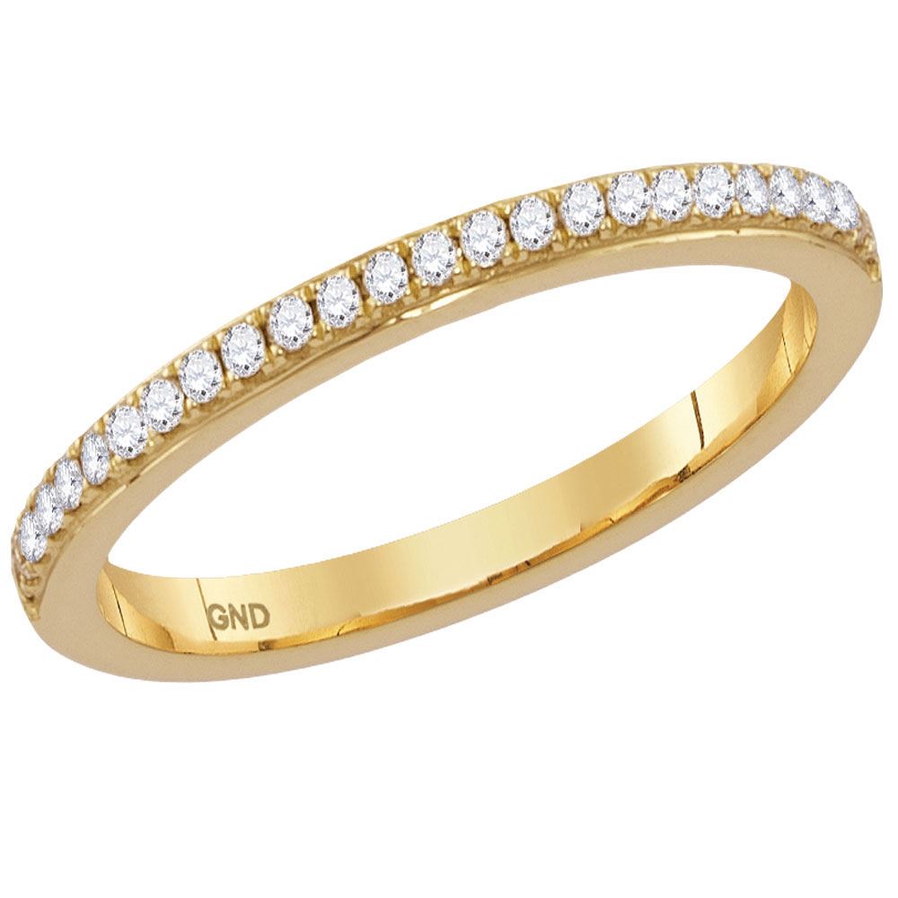 14kt Yellow Gold Womens Round Diamond Single Row Stackable Band Ring 1/8 Cttw