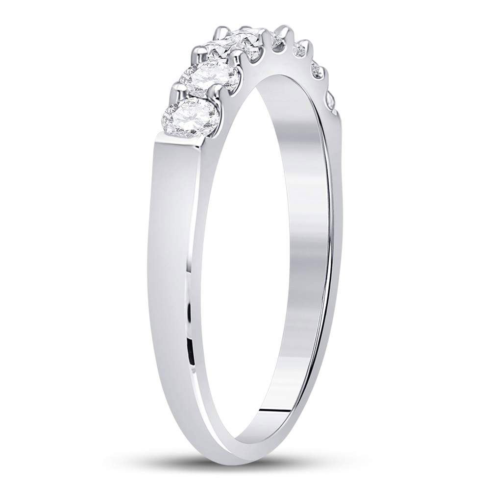 14kt White Gold Womens Round Diamond Single Row Wedding Band 1/2 Cttw