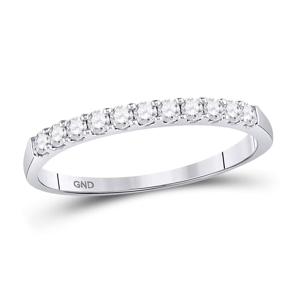 14kt White Gold Womens Round Diamond Single Row Wedding Band 1/4 Cttw