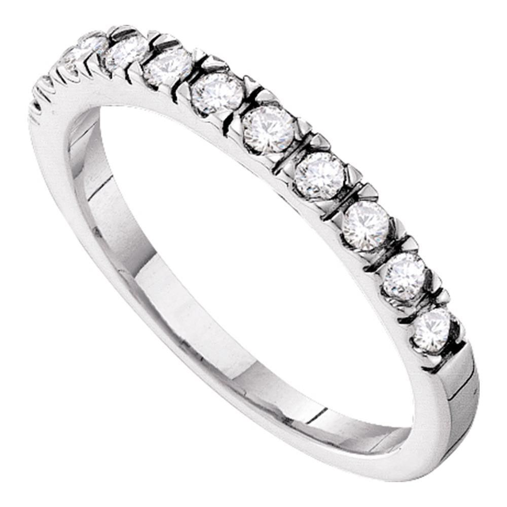 14kt White Gold Womens Round Diamond Slender 3mm Wedding Band 1/3 Cttw