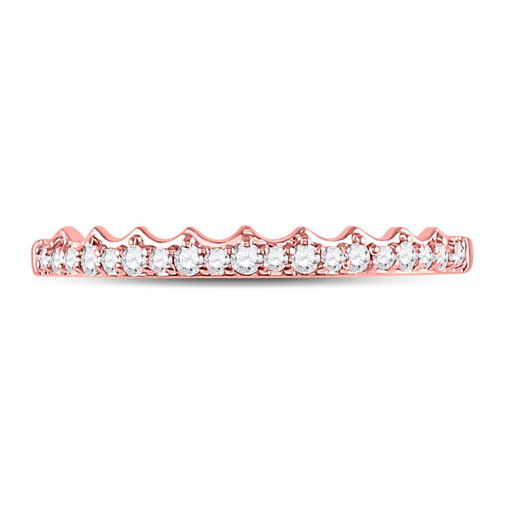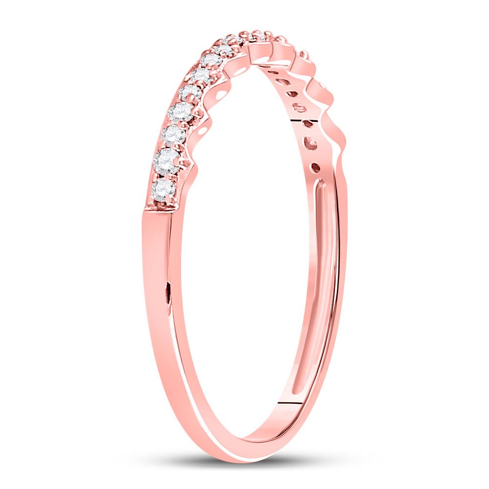 10kt Rose Gold Womens Round Diamond Slender Scalloped Stackable Band Ring 1/6 Cttw