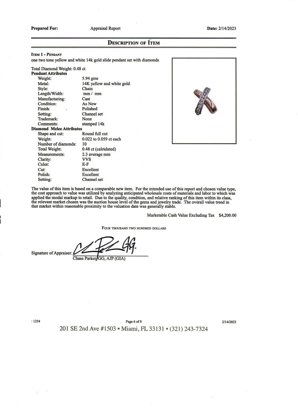 Earth-Mined Diamond Slide Pendant (Pendant Only).& nbsp; This is a 14 karat yellow and white gold natural, earth-mined diamond slide-style pendant that features .48 carats of round, brilliant-cut, E-F color, VVS clarity diamonds.& nbsp; The slide pendant is approximately 3/4& quot; diameter and 1.8 mm thick. This is a beautifully crafted piece of jewelry with excellent workmanship.& nbsp; This pendant is certified and appraised for $4,200.00 estimated retail replacement value.& nbsp; & nbsp;This is a preowned, estate item in excellent condition.& nbsp; THE CHAIN IN THE 3RD PHOTOGRAPH IS ONLY FOR DISPLAY PURPOSES.& nbsp; THE CHAIN IS NOT INCLUDED WITH THE SLIDE.