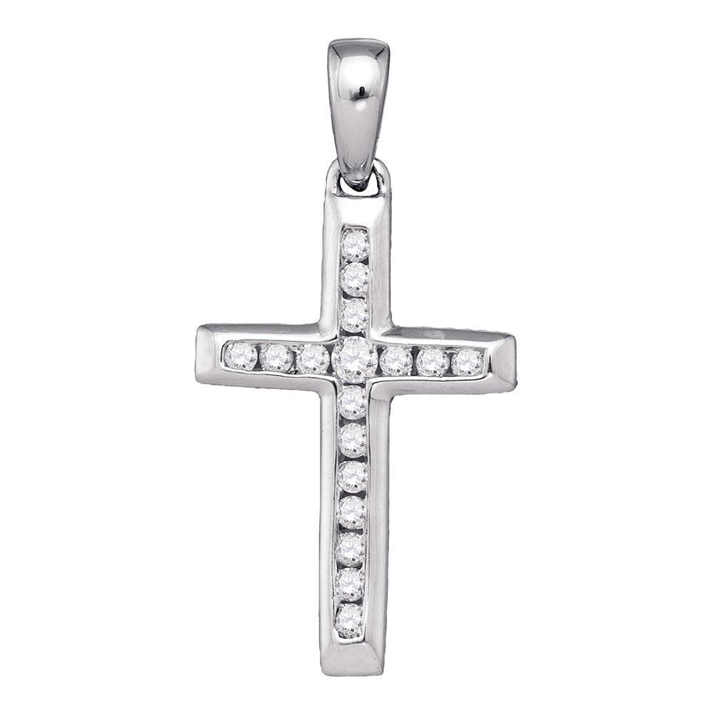 REF-10H9W - SKU: GD60296 ---- Diamond Small Cross Pendant 1/8 Cttw 10kt White Gold