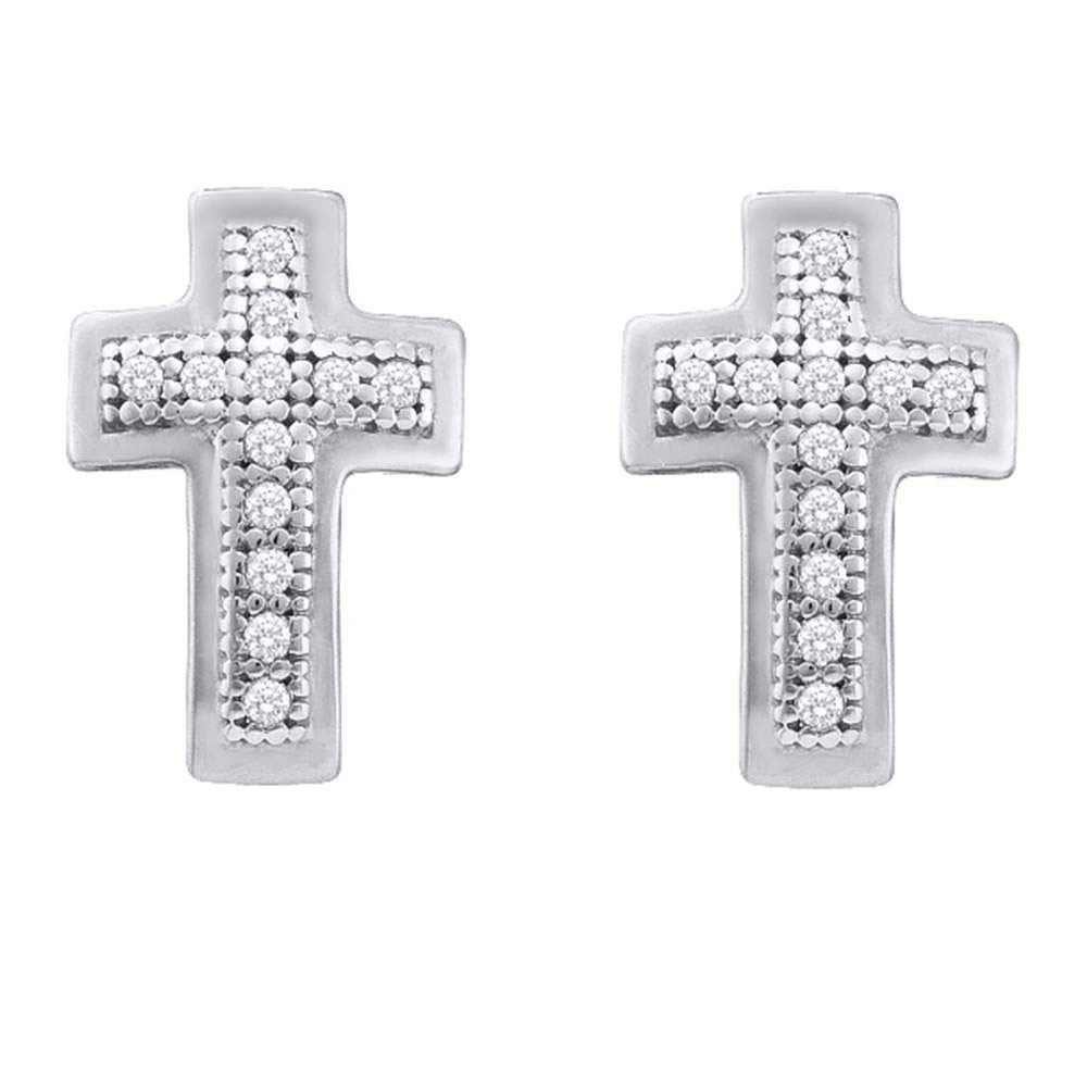 REF-11R8K - SKU: GD50495 ---- Diamond Small Cross Screwback Earrings 1/10 Cttw 10kt White Gold