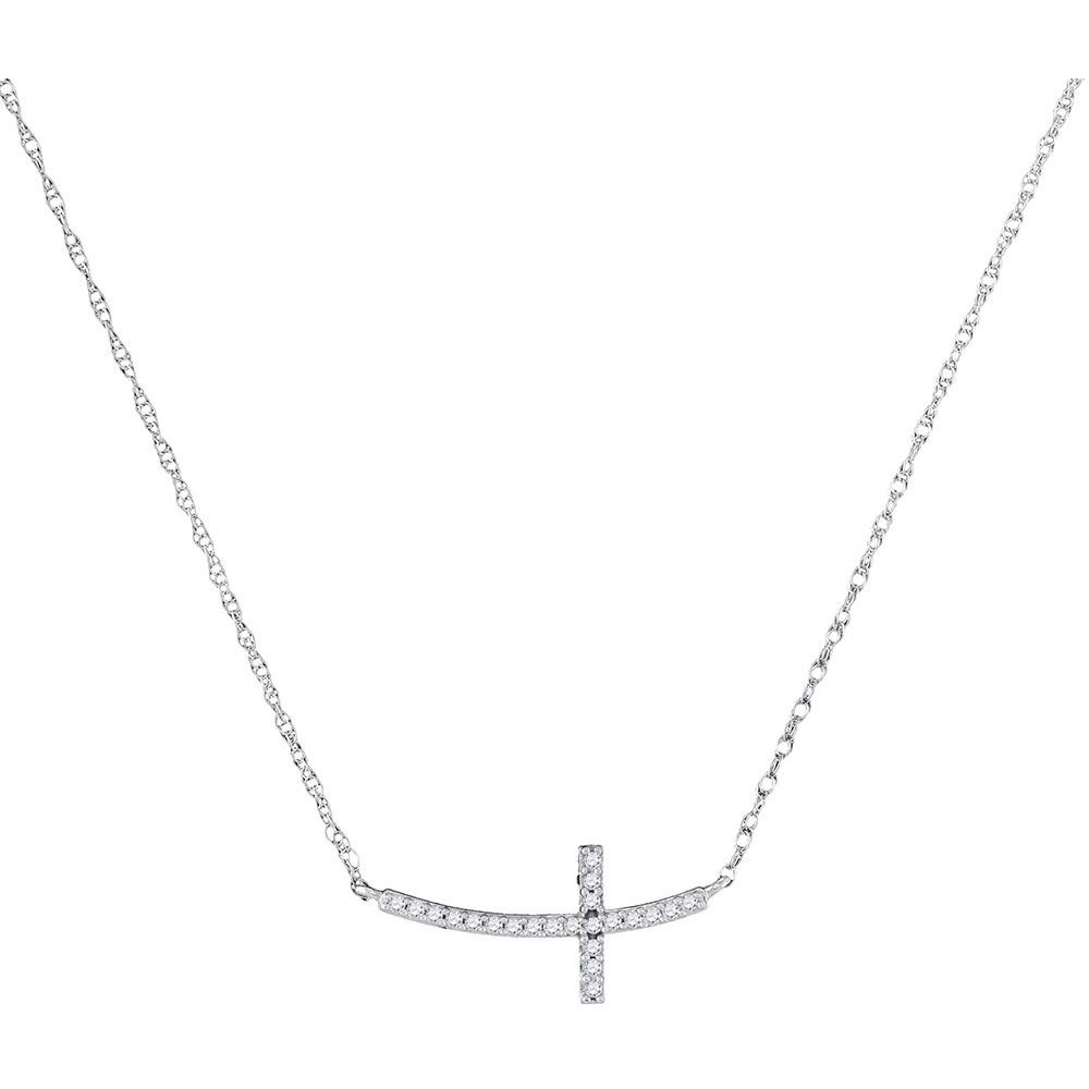REF-9M1X - SKU: GD98627 ---- Diamond Small Horizontal Cross Pendant Necklace 1/20 Cttw 10kt White Gold