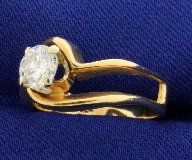 This gorgeous 0.80 carat diamond ring is set in a 14k yellow gold modern band. The high quality brilliant cut diamond has SI2 clarity and H color and has tremendous sparkle. Size 7 4.6g