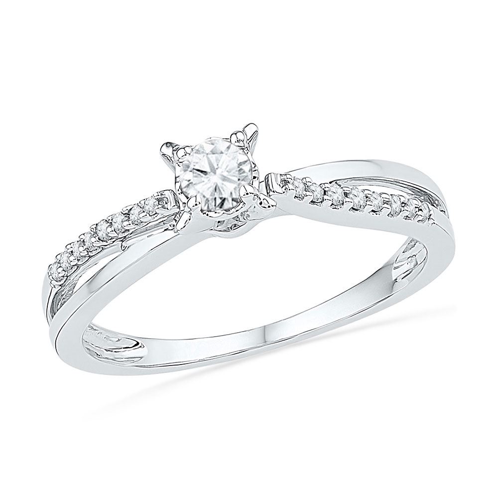 REF-30K9R - SKU: GD100758 ---- Diamond Solitaire Crossover Promise Bridal Ring 1/4 Cttw 10kt White Gold