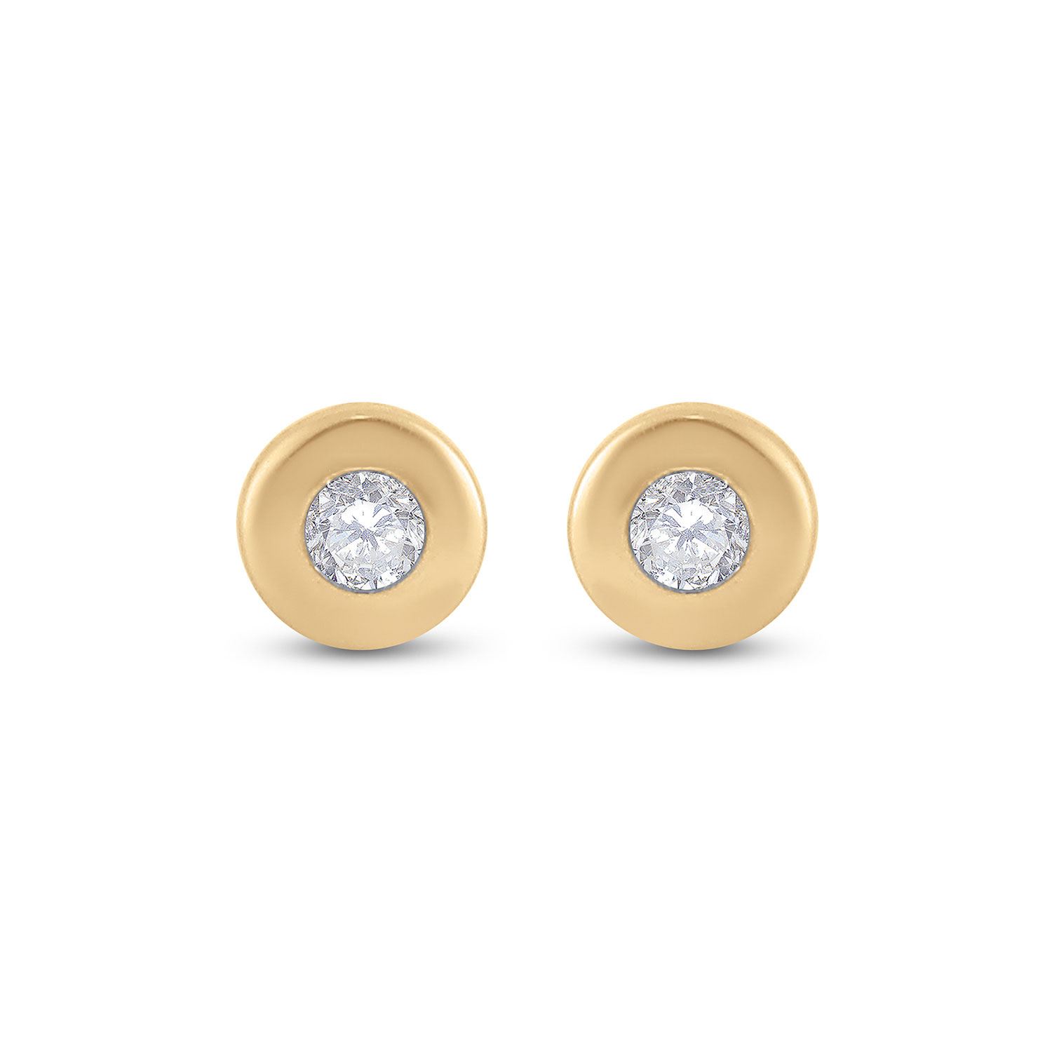 14kt Yellow Gold Womens Round Diamond Solitaire Earrings 1/10 Cttw