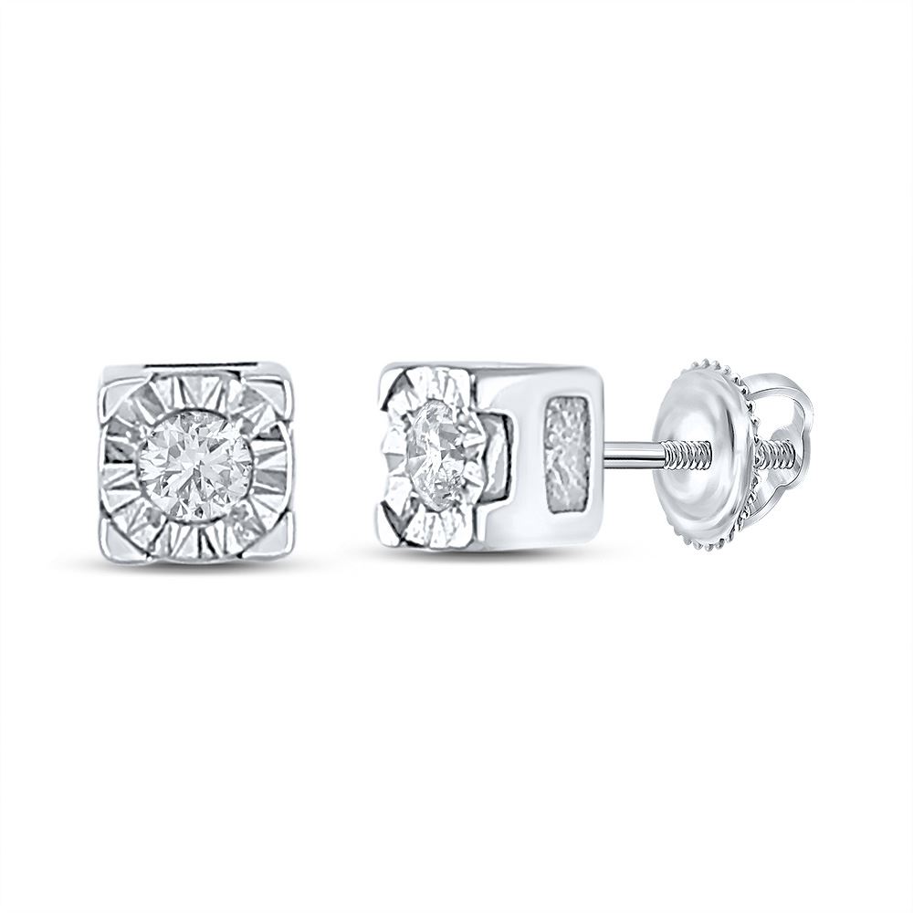 Sterling Silver Womens Round Diamond Solitaire Earrings 1/20 Cttw
