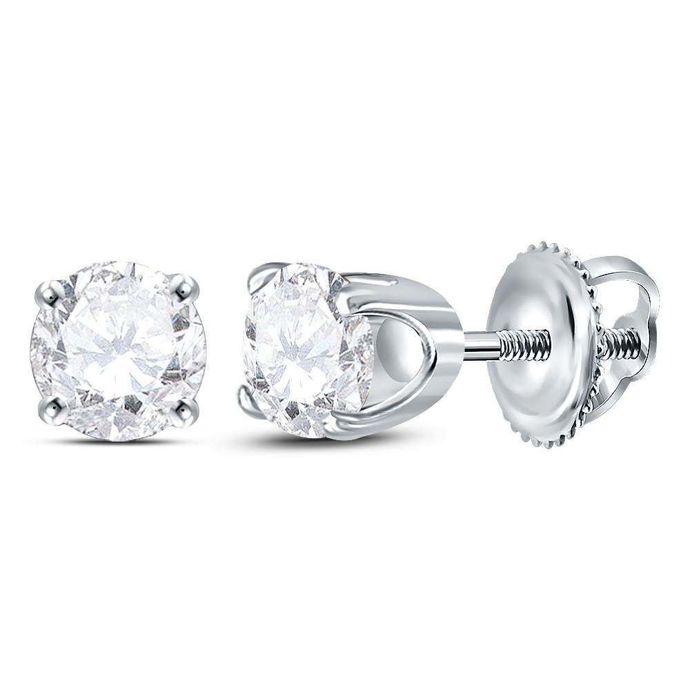 14kt White Gold Womens Round Diamond Solitaire Earrings 5/8 Cttw