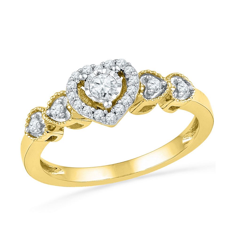 REF-22Y7X - SKU: GD101790 ---- Diamond Solitaire Framed Heart Ring 1/5 Cttw 10kt Yellow Gold