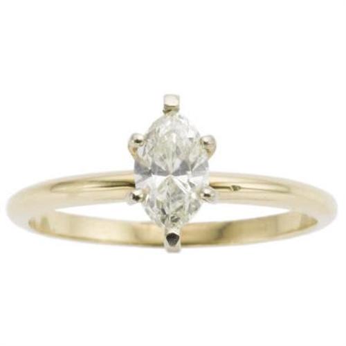 <B>Diamond, Gold Ring</B></I><BR><BR>The solitaire ring features a marquise-shaped diamond measuring 6.90 x 4.20 mm and weighing approximately 0.40 carat, set in 14k yellow gold. Gross weight 1.60 grams. <BR>*Note: Size 5-1/2 (sizeable) <B>Condition Report:</B> Very good condition.<BR>Diamond is graded as K color, I1 clarity<BR><BR><b>Shipping:</b> Miscellaneous Collectibles, Smal (<a target="_blank" href="http://www.heritageauctions.com/common/shipping.php">view shipping information</a>)