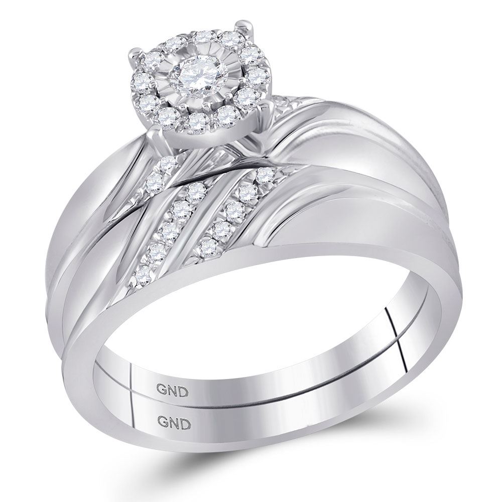 10kt White Gold His Hers Round Diamond Solitaire Matching Wedding Set 1/3 Cttw.