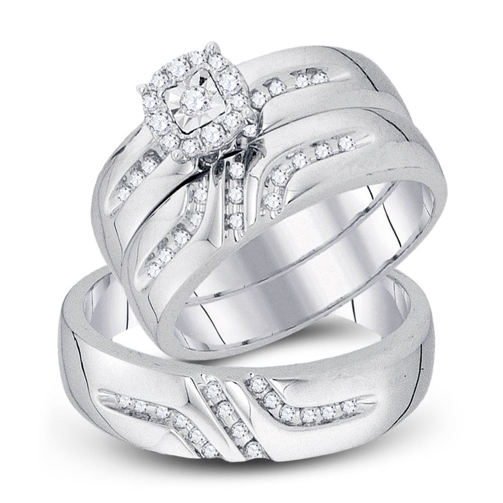 10kt White Gold His Hers Round Diamond Solitaire Matching Wedding Set 1/3 Cttw.