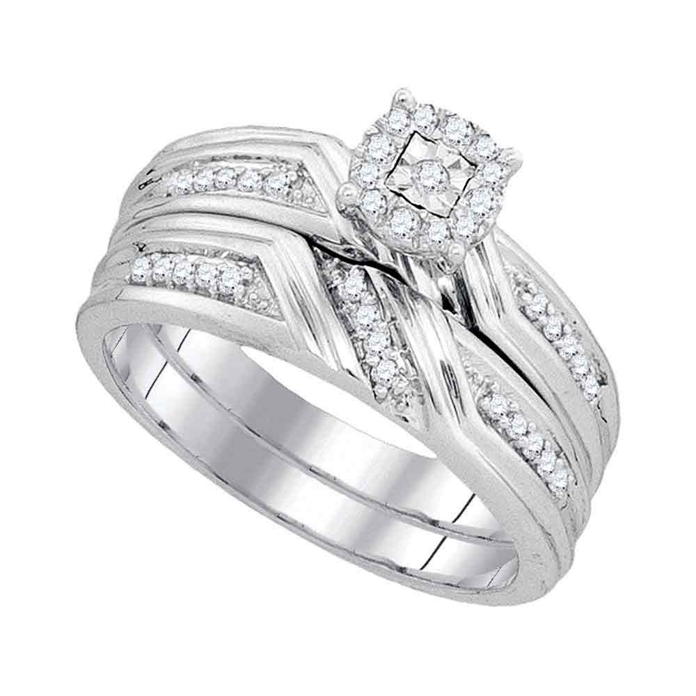 Diamond Solitaire Matching Wedding Set 1/3 Cttw 10KT White Gold