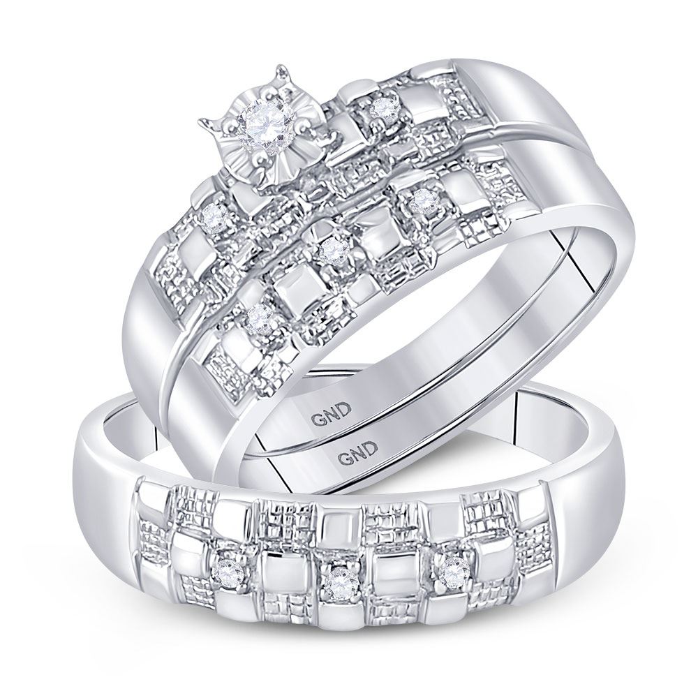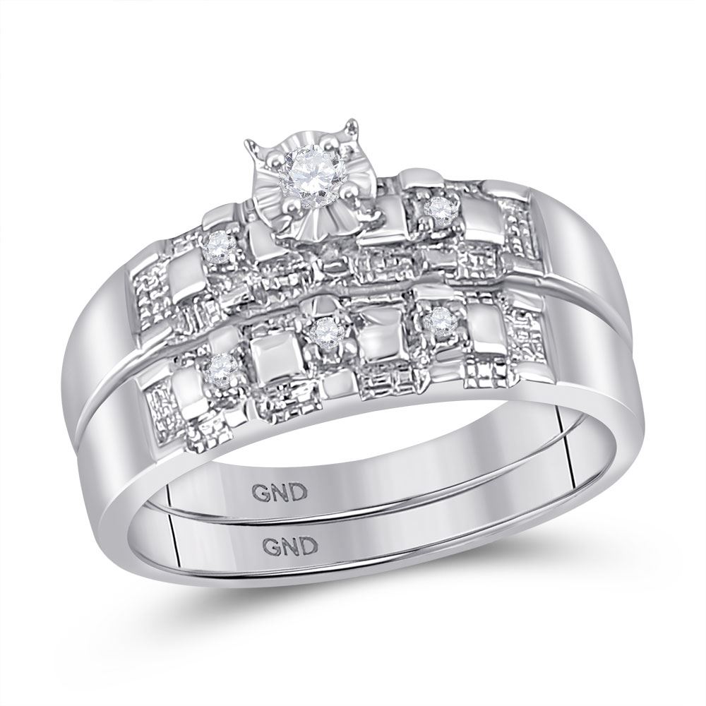 10kt White Gold His Hers Round Diamond Solitaire Matching Wedding Set 1/6 Cttw.
