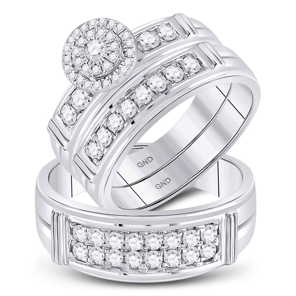 14kt White Gold His Hers Round Diamond Solitaire Matching Wedding Set 1 Cttw.