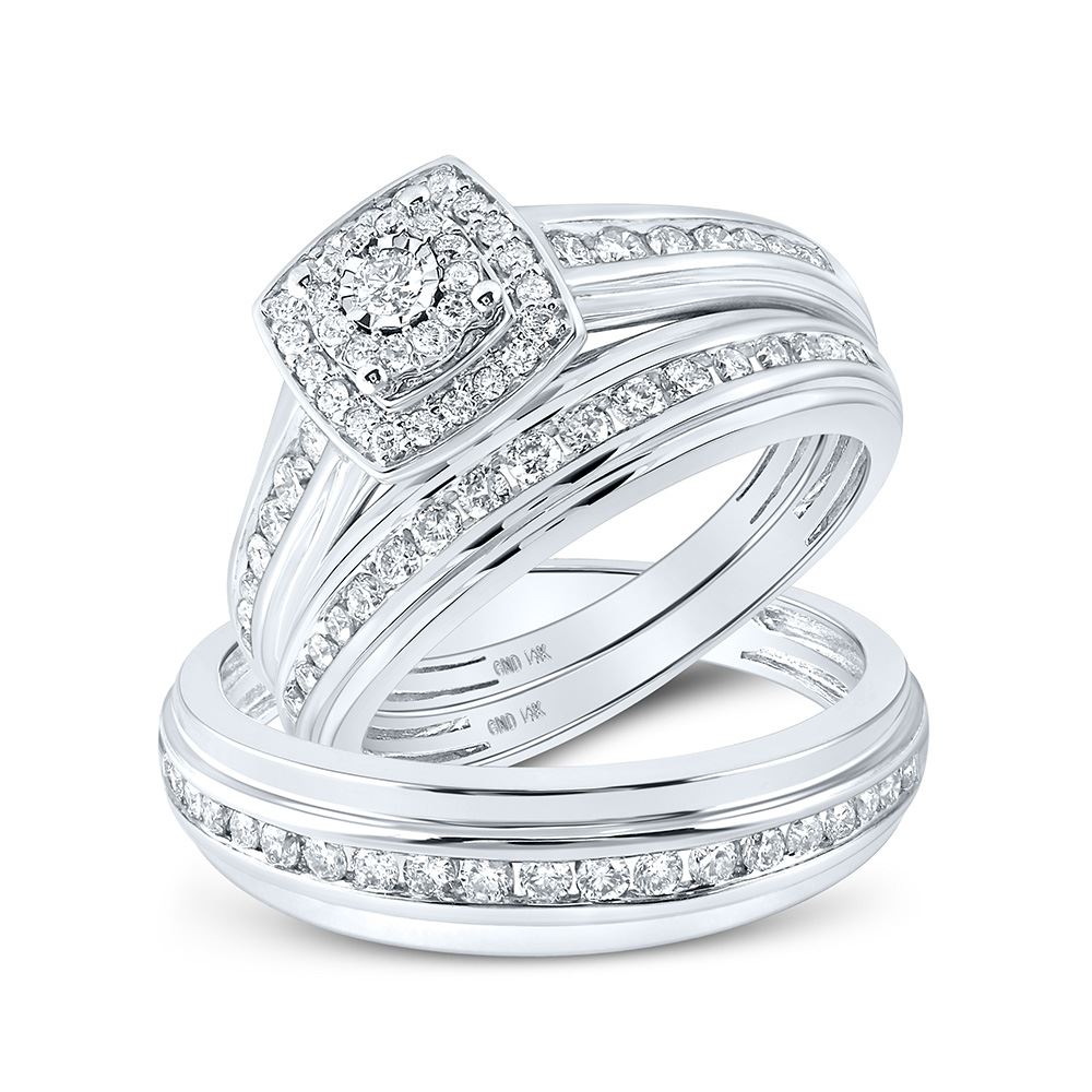 14kt White Gold His Hers Round Diamond Solitaire Matching Wedding Set 7/8 Cttw.