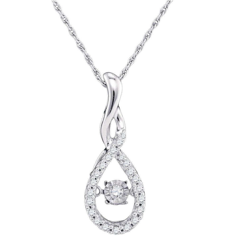 REF-25X5Y - SKU: GD97047 ---- Diamond Solitaire Moving Twinkle Teardrop Pendant 1/4 Cttw 10kt White Gold