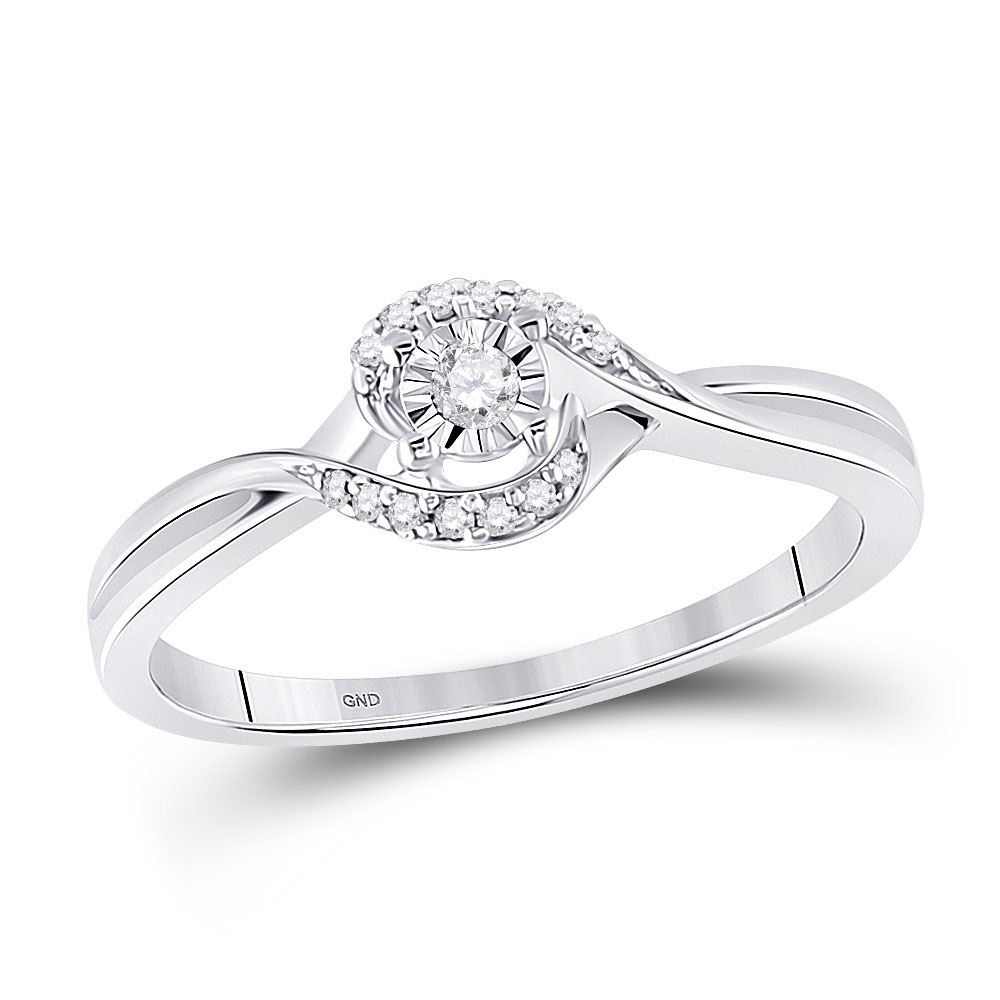 10kt White Gold Womens Round Diamond Solitaire Promise Ring 1/10 Cttw