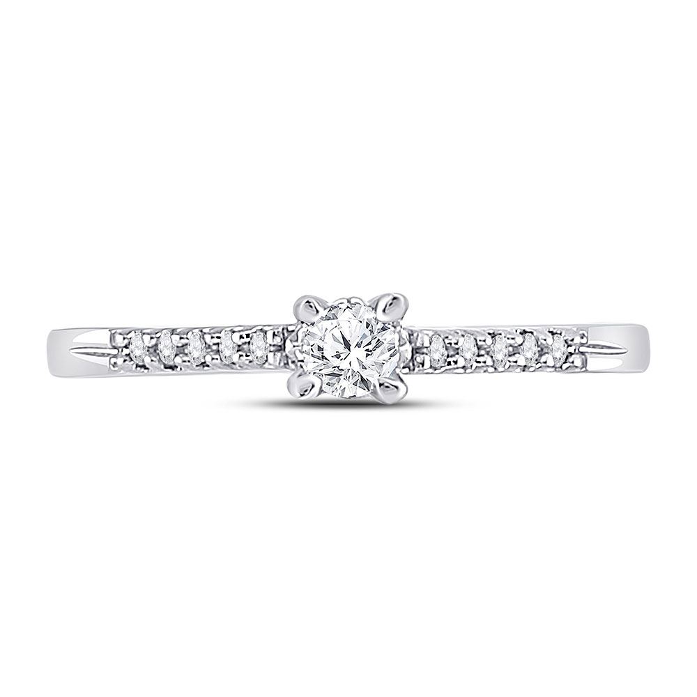10kt White Gold Womens Round Diamond Solitaire Promise Ring 1/8 Cttw