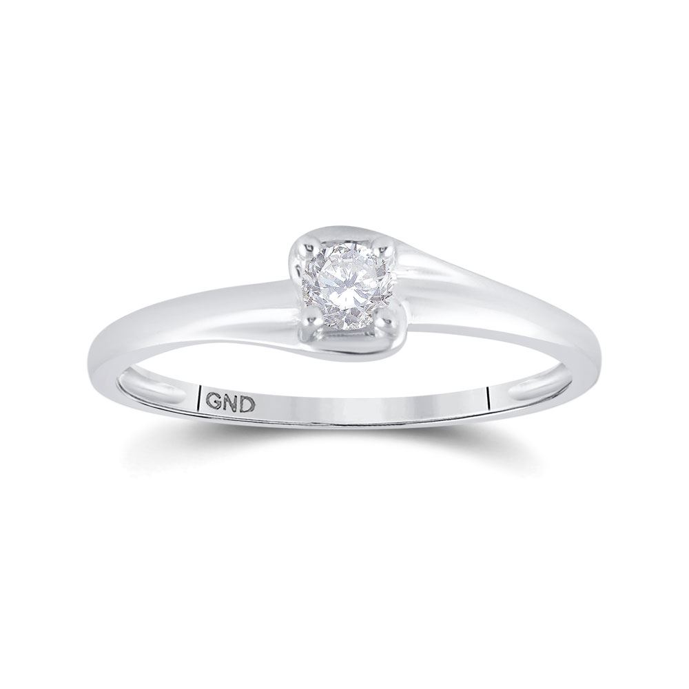 10kt White Gold Womens Round Diamond Solitaire Promise Ring 1/8 Cttw