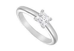 The unification of two into one is symbolized in this diamond solitaire ring. A princess-cut diamond is securely held in a 4-prong setting. Made in 14K white gold this diamond solitaire ring has a total diamond weight (TDW) of 0.50 ct.